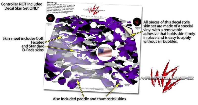 WraptorCamo Digital Camo Purple - Decal Style Skin fits Microsoft XBOX One ELITE Wireless Controller (CONTROLLER NOT INCLUDED)