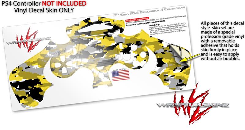 WraptorSkinz Skin compatible with Sony PS4 Dualshock Controller PlayStation 4 Original Slim and Pro WraptorCamo Digital Camo Yellow (CONTROLLER NOT INCLUDED)