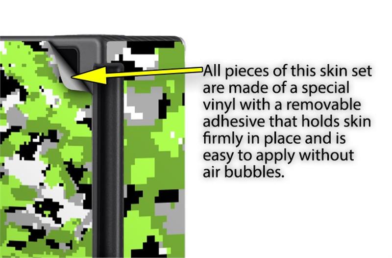 WraptorSkinz® skins are superb photo quality designs and vibrant colors printed with special Eco-Friendly, fade resistant inks. Our skins are self-adhering flexible vinyl skins that helps prevent scratches. Made of composite, multi-layered commercial grade materials. The bottom layer is made with a special removable adhesive that is easily positioned and applied without air bubbles. We print your design on the bottom layer then bond a professional grade laminate over the entire skin adding a glossy protective finish.