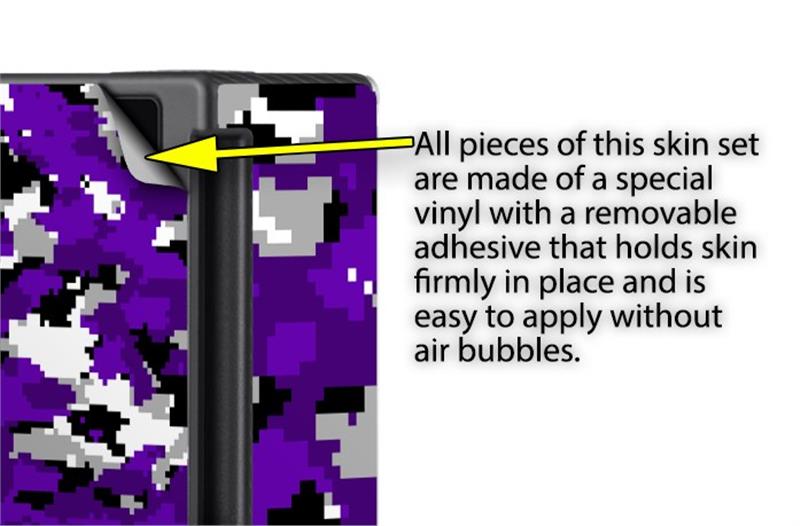 WraptorSkinz® skins are superb photo quality designs and vibrant colors printed with special Eco-Friendly, fade resistant inks. Our skins are self-adhering flexible vinyl skins that helps prevent scratches. Made of composite, multi-layered commercial grade materials. The bottom layer is made with a special removable adhesive that is easily positioned and applied without air bubbles. We print your design on the bottom layer then bond a professional grade laminate over the entire skin adding a glossy protective finish.