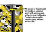 WraptorSkinz® skins are superb photo quality designs and vibrant colors printed with special Eco-Friendly, fade resistant inks. Our skins are self-adhering flexible vinyl skins that helps prevent scratches. Made of composite, multi-layered commercial grade materials. The bottom layer is made with a special removable adhesive that is easily positioned and applied without air bubbles. We print your design on the bottom layer then bond a professional grade laminate over the entire skin adding a glossy protective finish.