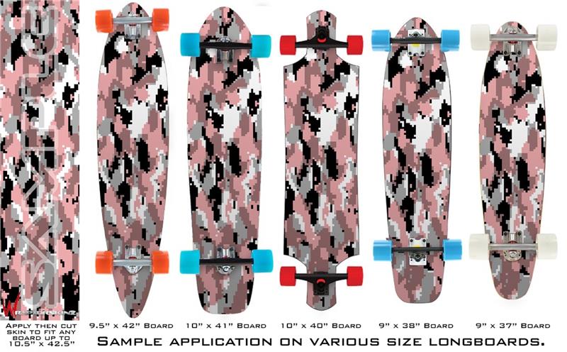 Our longboard skins are made so that one size fits boards up to 10” wide x 42” long. This means after applying the skin it you will trimming to fit you’re the shape of your board with a sharp utility knife.