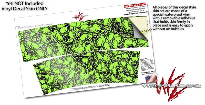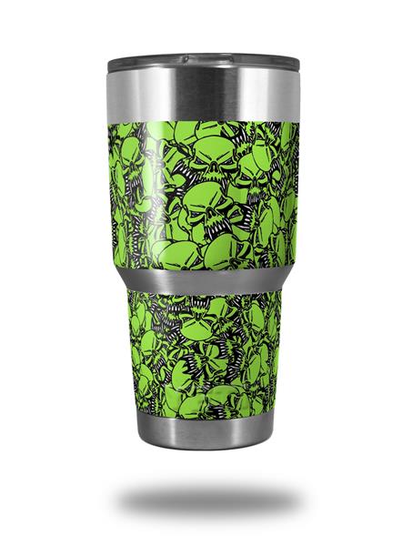 Skin Decal Wrap for Yeti Tumbler Rambler 30 oz Scattered Skulls Neon Green (TUMBLER NOT INCLUDED)