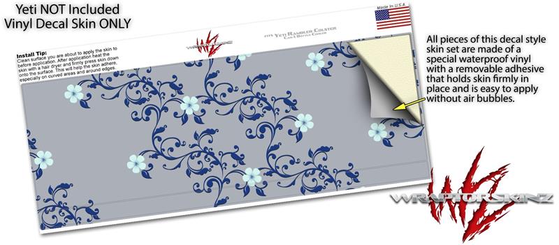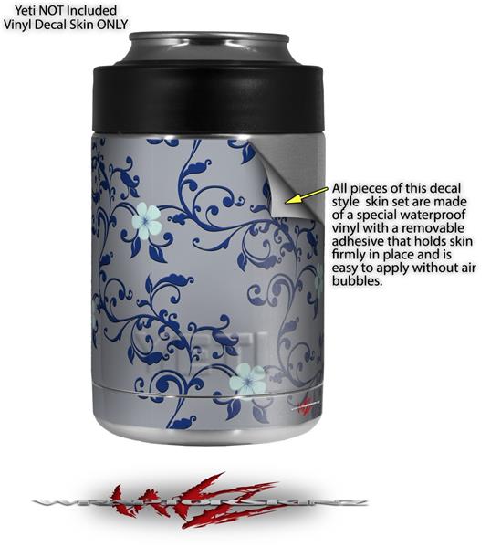 Skin Decal Wrap for Yeti Colster, Ozark Trail and RTIC Can Coolers - Victorian Design Blue (COOLER NOT INCLUDED)