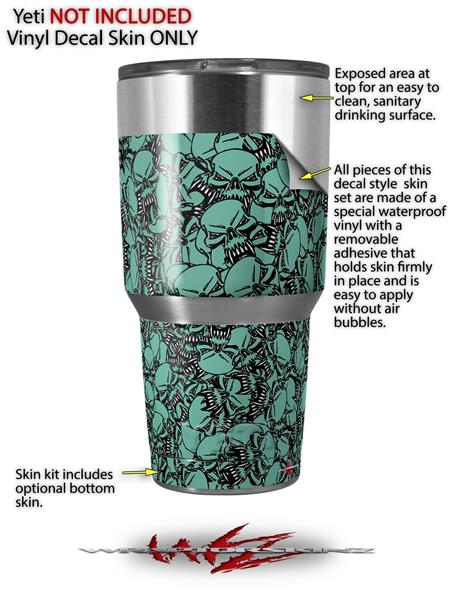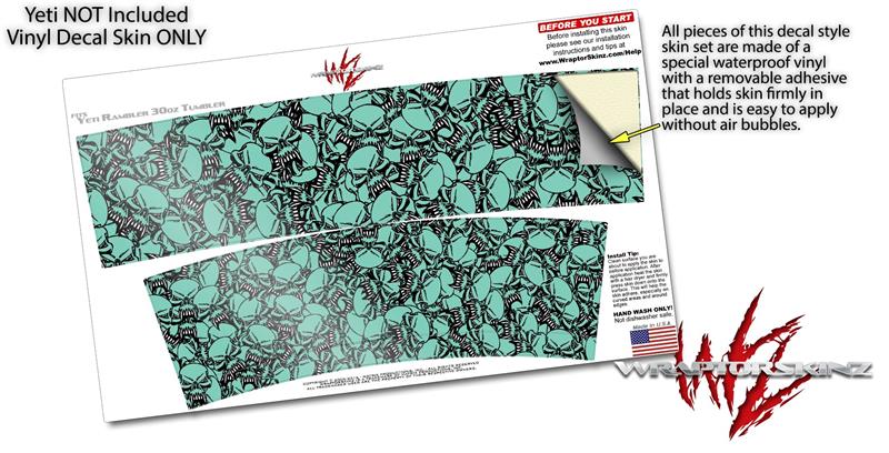 Skin Decal Wrap for Yeti Tumbler Rambler 30 oz Scattered Skulls Seafoam Green (TUMBLER NOT INCLUDED)