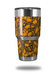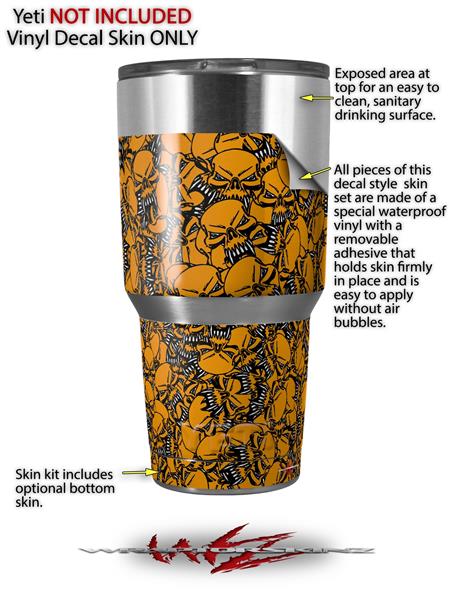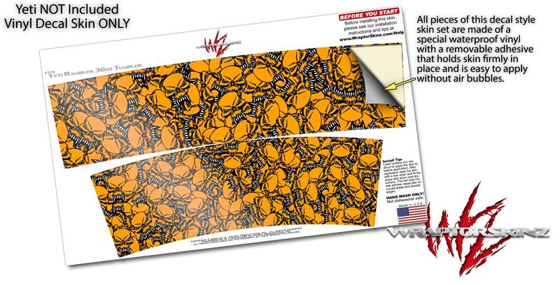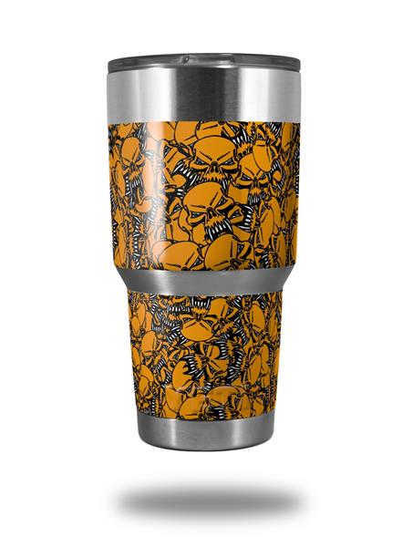 Skin Decal Wrap for Yeti Tumbler Rambler 30 oz Scattered Skulls Orange (TUMBLER NOT INCLUDED)