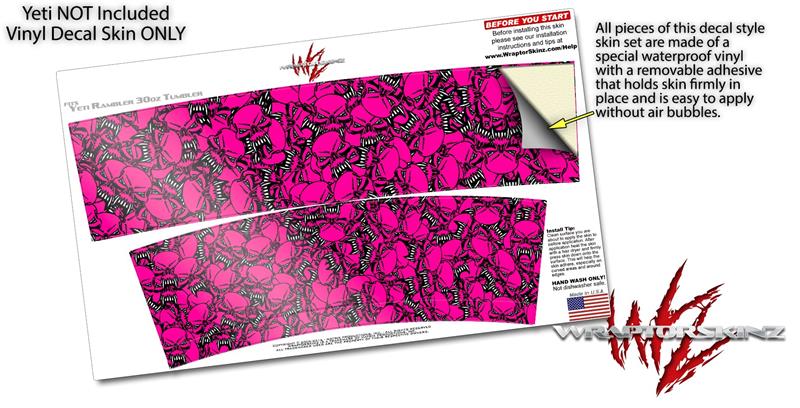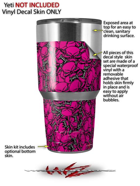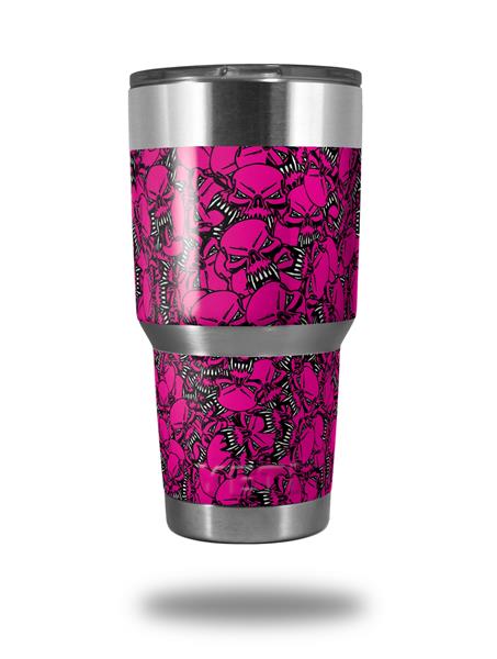 Skin Decal Wrap for Yeti Tumbler Rambler 30 oz Scattered Skulls Hot Pink (TUMBLER NOT INCLUDED)