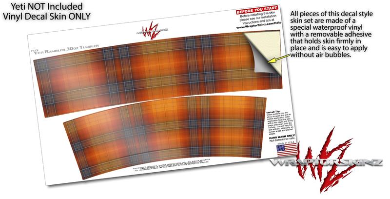 Skin Decal Wrap for Yeti Tumbler Rambler 30 oz Plaid Pumpkin Orange (TUMBLER NOT INCLUDED)