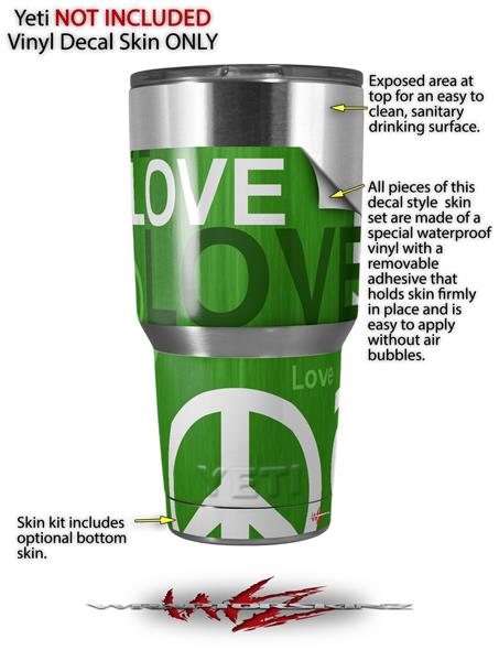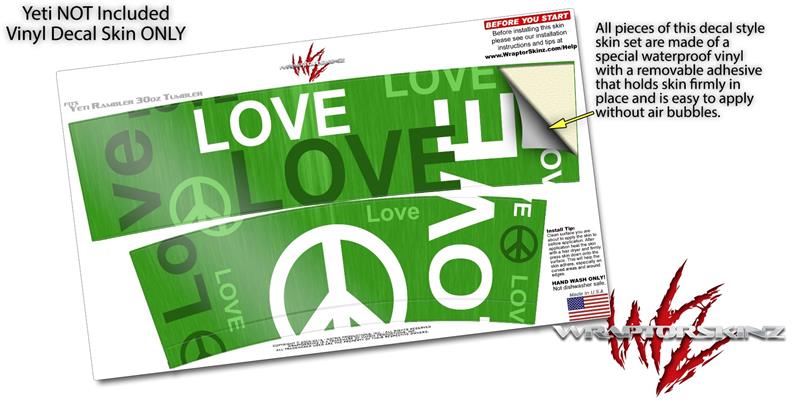 Skin Decal Wrap for Yeti Tumbler Rambler 30 oz Love and Peace Green (TUMBLER NOT INCLUDED)