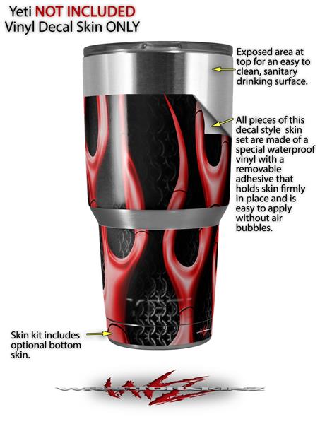 Skin Decal Wrap for Yeti Tumbler Rambler 30 oz Metal Flames Red (TUMBLER NOT INCLUDED)