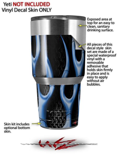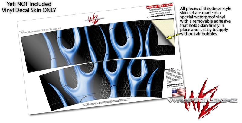 Skin Decal Wrap for Yeti Tumbler Rambler 30 oz Metal Flames Blue (TUMBLER NOT INCLUDED)