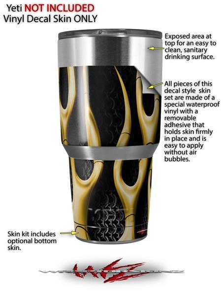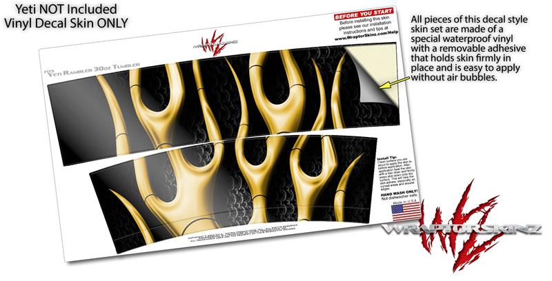 Skin Decal Wrap for Yeti Tumbler Rambler 30 oz Metal Flames Yellow (TUMBLER NOT INCLUDED)
