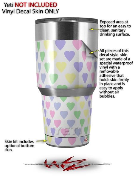 Skin Decal Wrap for Yeti Tumbler Rambler 30 oz Pastel Hearts on White (TUMBLER NOT INCLUDED)