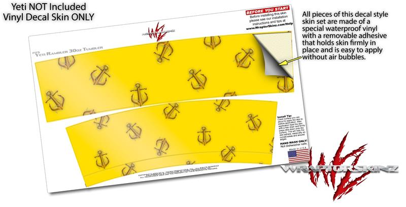 Skin Decal Wrap for Yeti Tumbler Rambler 30 oz Anchors Away Yellow (TUMBLER NOT INCLUDED)