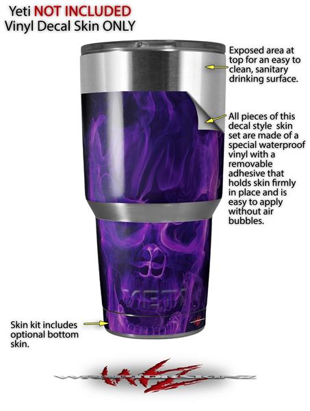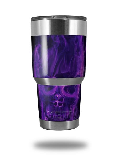 Skin Decal Wrap for Yeti Tumbler Rambler 30 oz Flaming Fire Skull Purple (TUMBLER NOT INCLUDED)