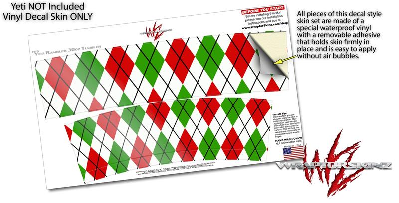 Skin Decal Wrap for Yeti Tumbler Rambler 30 oz Argyle Red and Green (TUMBLER NOT INCLUDED)