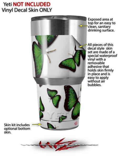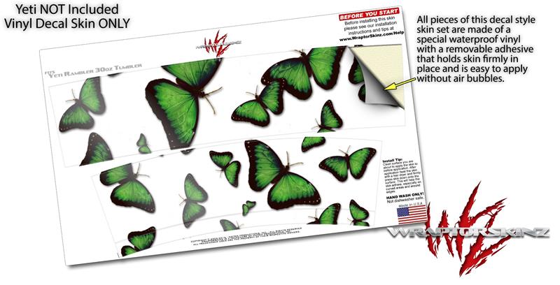 Skin Decal Wrap for Yeti Tumbler Rambler 30 oz Butterflies Green (TUMBLER NOT INCLUDED)