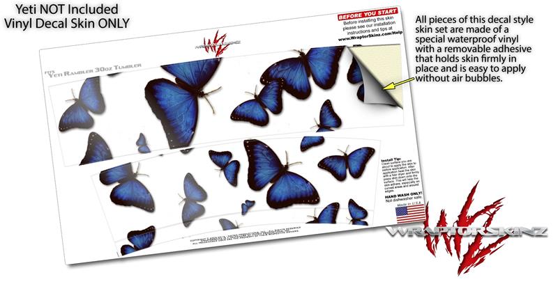 Skin Decal Wrap for Yeti Tumbler Rambler 30 oz Butterflies Blue (TUMBLER NOT INCLUDED)