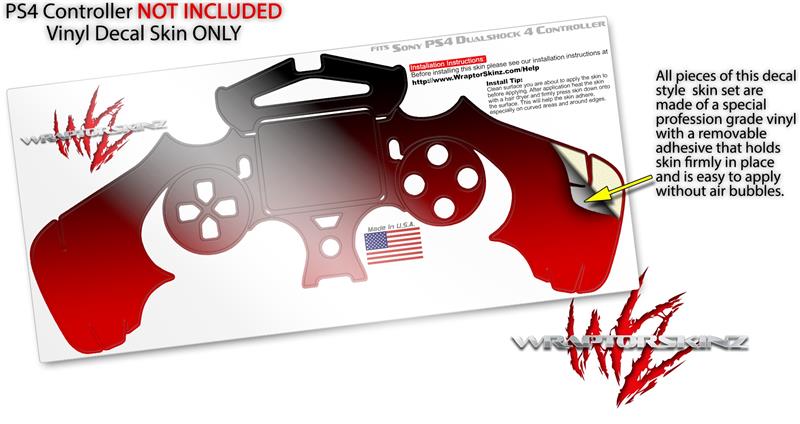WraptorSkinz Skin compatible with Sony PS4 Dualshock Controller PlayStation 4 Original Slim and Pro Smooth Fades Red Black (CONTROLLER NOT INCLUDED)