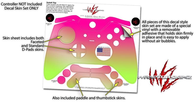 Smooth Fades Neon Green Hot Pink - Decal Style Skin fits Microsoft XBOX One ELITE Wireless Controller (CONTROLLER NOT INCLUDED)