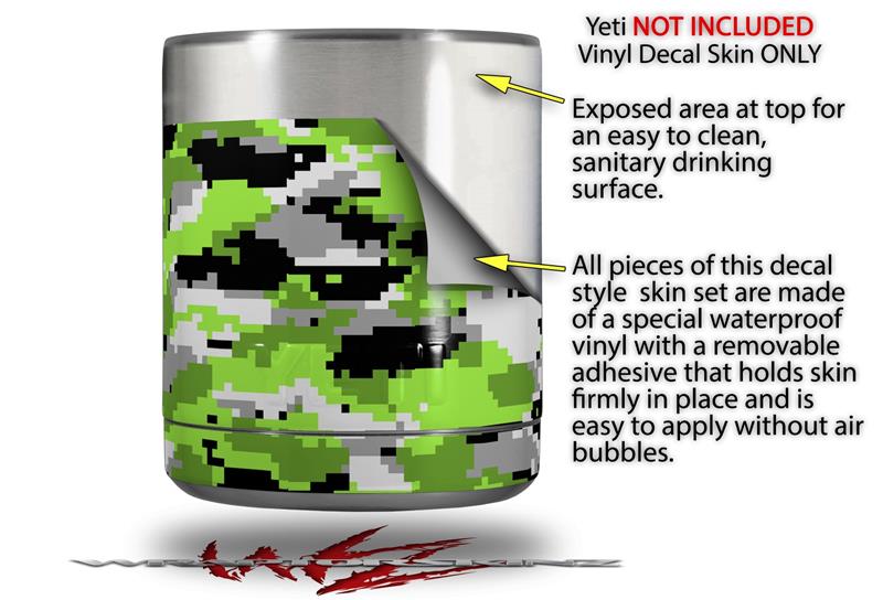 Skin Decal Wrap for Yeti Rambler Lowball - WraptorCamo Digital Camo Neon Green (CUP NOT INCLUDED)