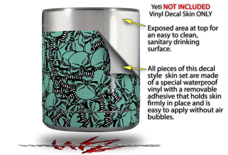 Skin Decal Wrap for Yeti Rambler Lowball - Scattered Skulls Seafoam Green (CUP NOT INCLUDED)