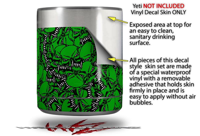 Skin Decal Wrap for Yeti Rambler Lowball - Scattered Skulls Green (CUP NOT INCLUDED)