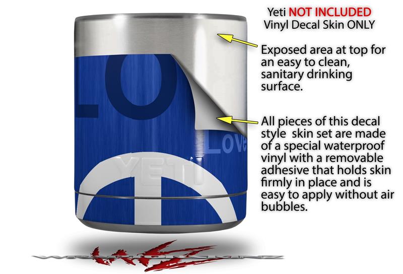 Skin Decal Wrap for Yeti Rambler Lowball - Love and Peace Blue (CUP NOT INCLUDED)