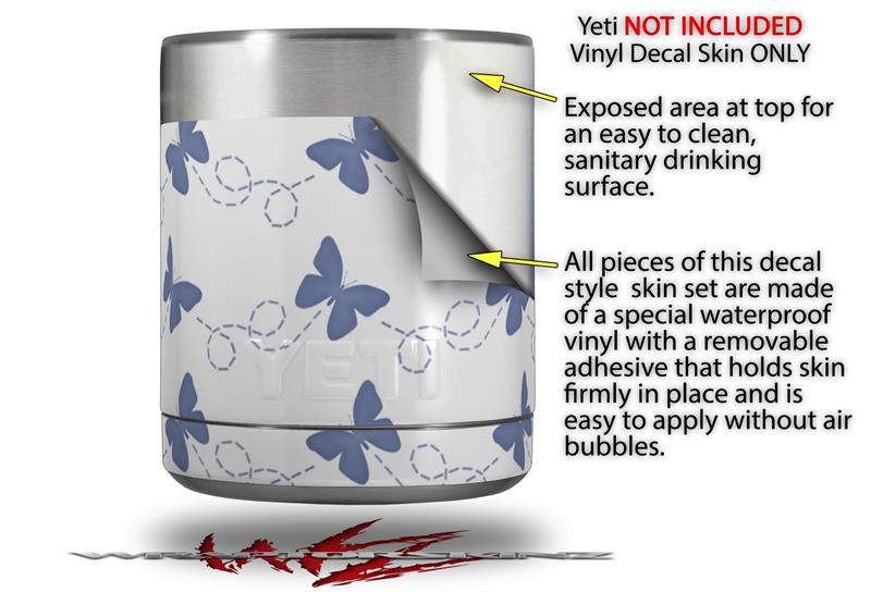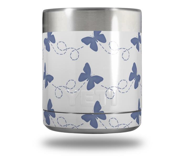Skin Decal Wrap for Yeti Rambler Lowball - Pastel Butterflies Blue on White (CUP NOT INCLUDED)