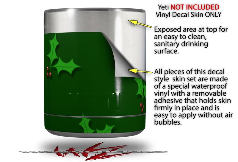 Skin Decal Wrap for Yeti Rambler Lowball - Christmas Holly Leaves on Green (CUP NOT INCLUDED)