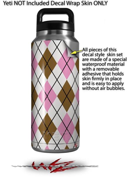 Skin Decal Wrap for Yeti Rambler Bottle 36oz Argyle Pink and Brown (YETI NOT INCLUDED)