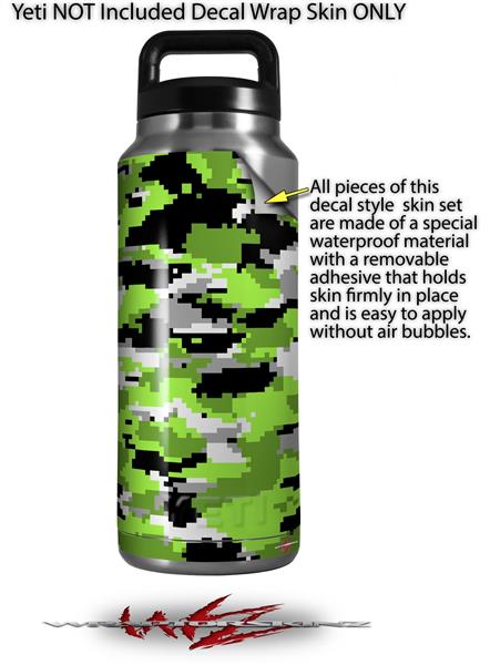 Skin Decal Wrap for Yeti Rambler Bottle 36oz WraptorCamo Digital Camo Neon Green (YETI NOT INCLUDED)