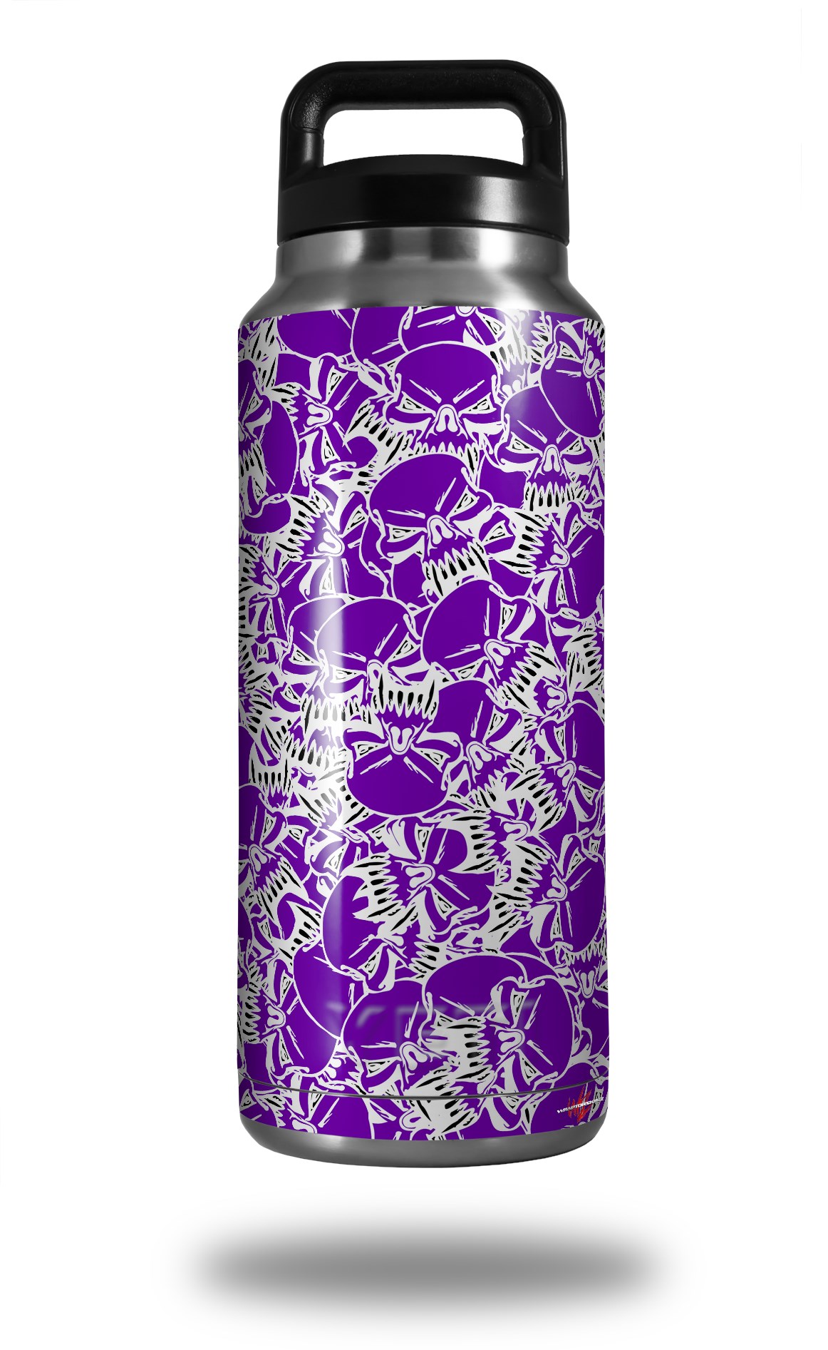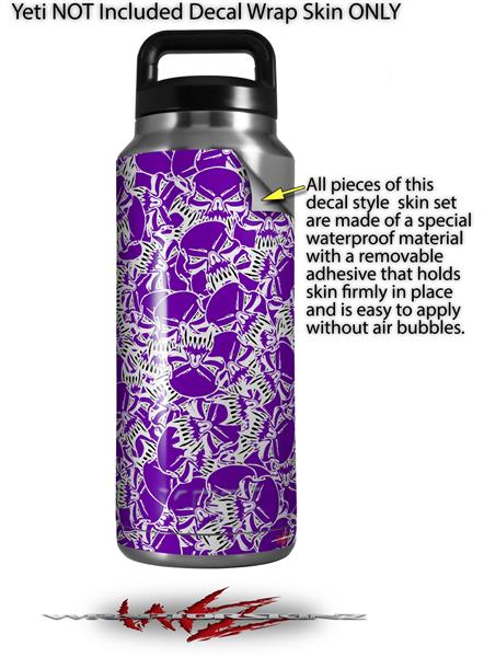 Skin Decal Wrap for Yeti Rambler Bottle 36oz Scattered Skulls Purple (YETI NOT INCLUDED)