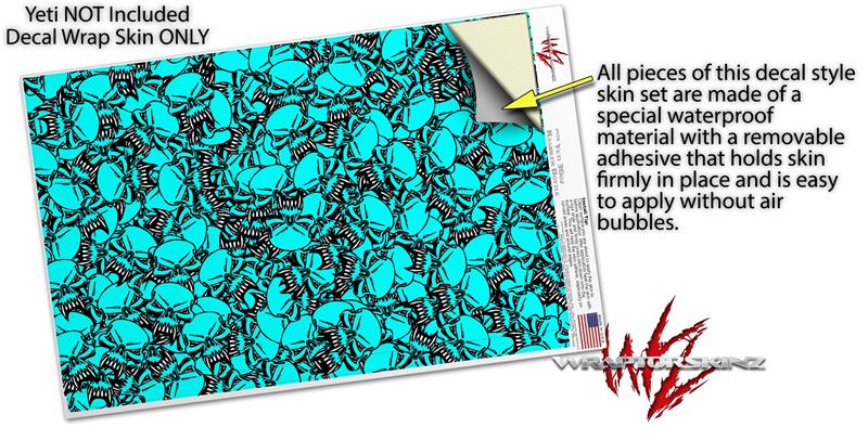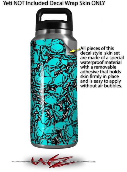 Skin Decal Wrap for Yeti Rambler Bottle 36oz Scattered Skulls Neon Teal (YETI NOT INCLUDED)
