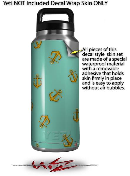 Skin Decal Wrap for Yeti Rambler Bottle 36oz Anchors Away Seafoam Green (YETI NOT INCLUDED)