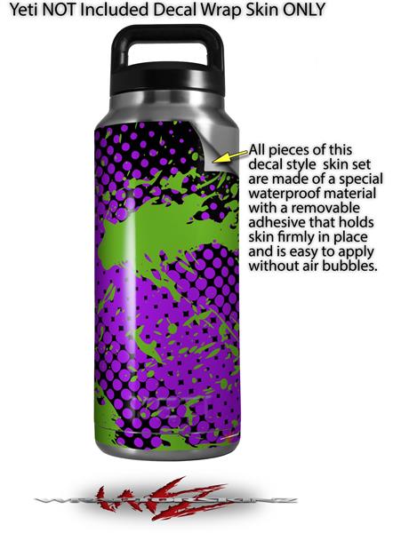 Skin Decal Wrap for Yeti Rambler Bottle 36oz Halftone Splatter Green Purple (YETI NOT INCLUDED)