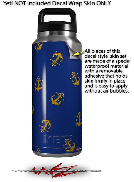 Skin Decal Wrap for Yeti Rambler Bottle 36oz Anchors Away Blue (YETI NOT INCLUDED)