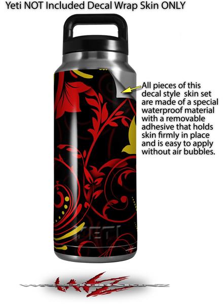 Skin Decal Wrap for Yeti Rambler Bottle 36oz Twisted Garden Red and Yellow (YETI NOT INCLUDED)