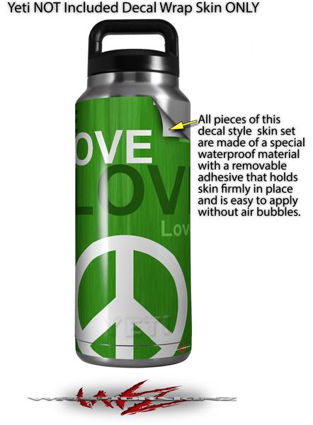 Skin Decal Wrap for Yeti Rambler Bottle 36oz Love and Peace Green (YETI NOT INCLUDED)