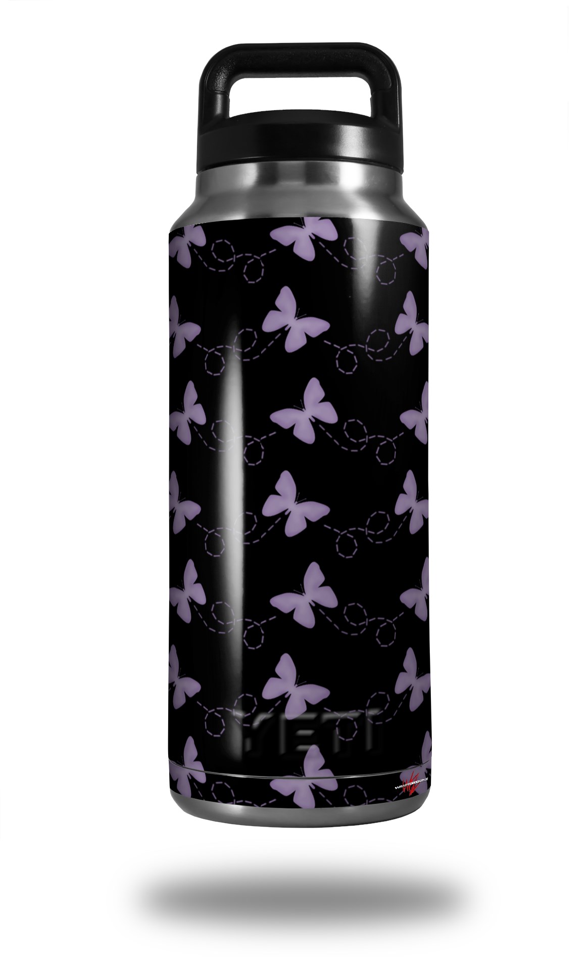 Skin Decal Wrap for Yeti Rambler Bottle 36oz Pastel Butterflies Purple on Black (YETI NOT INCLUDED)