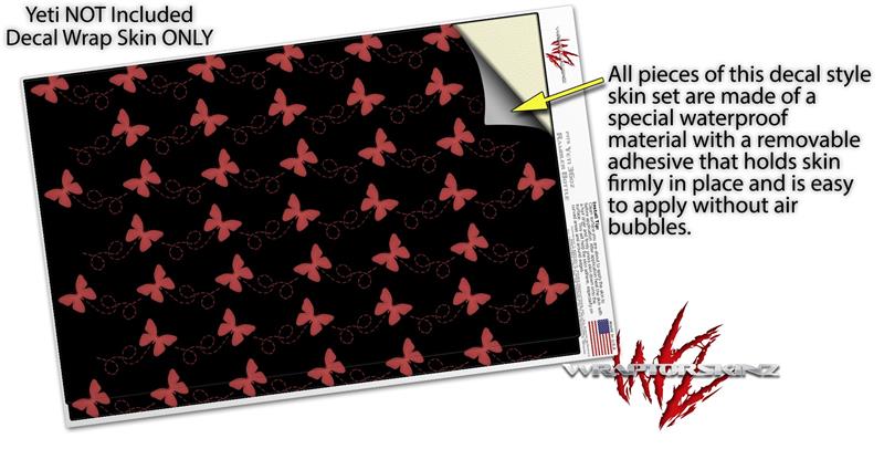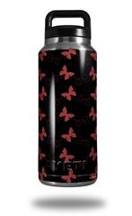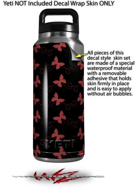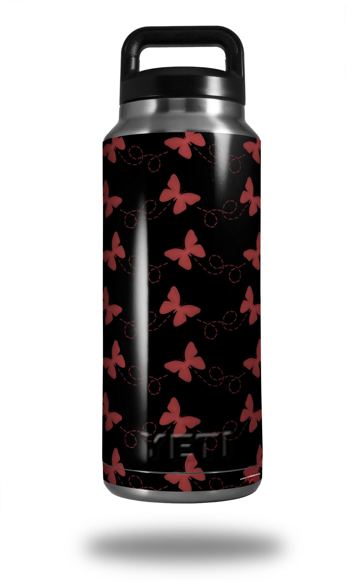 Skin Decal Wrap for Yeti Rambler Bottle 36oz Pastel Butterflies Red on Black (YETI NOT INCLUDED)