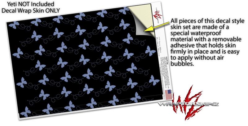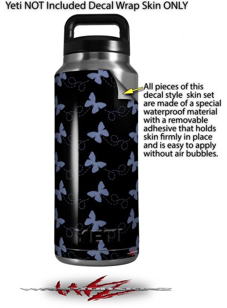 Skin Decal Wrap for Yeti Rambler Bottle 36oz Pastel Butterflies Blue on Black (YETI NOT INCLUDED)