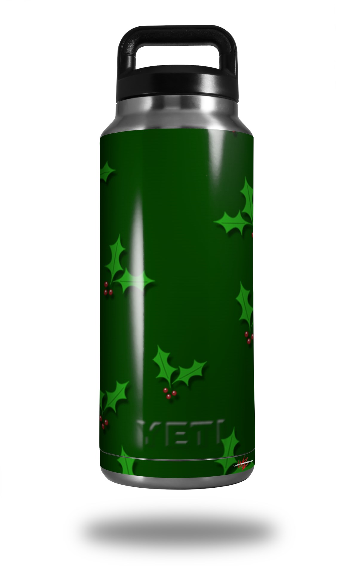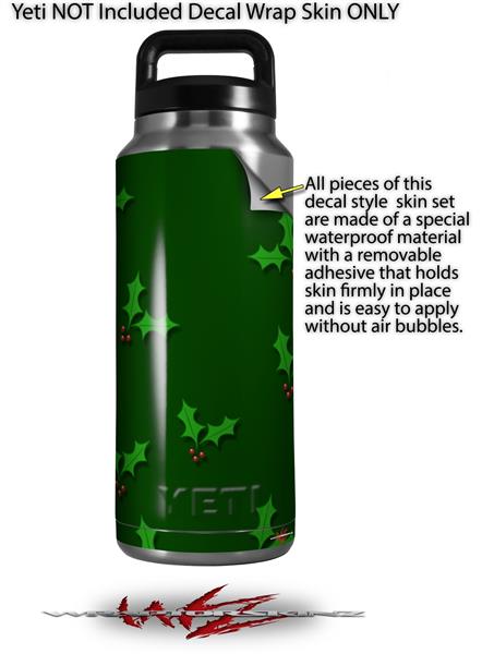 Skin Decal Wrap for Yeti Rambler Bottle 36oz Christmas Holly Leaves on Green (YETI NOT INCLUDED)