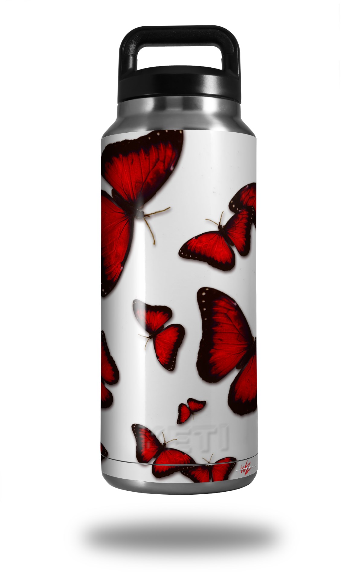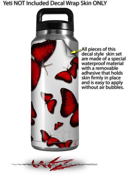 Skin Decal Wrap for Yeti Rambler Bottle 36oz Butterflies Red (YETI NOT INCLUDED)