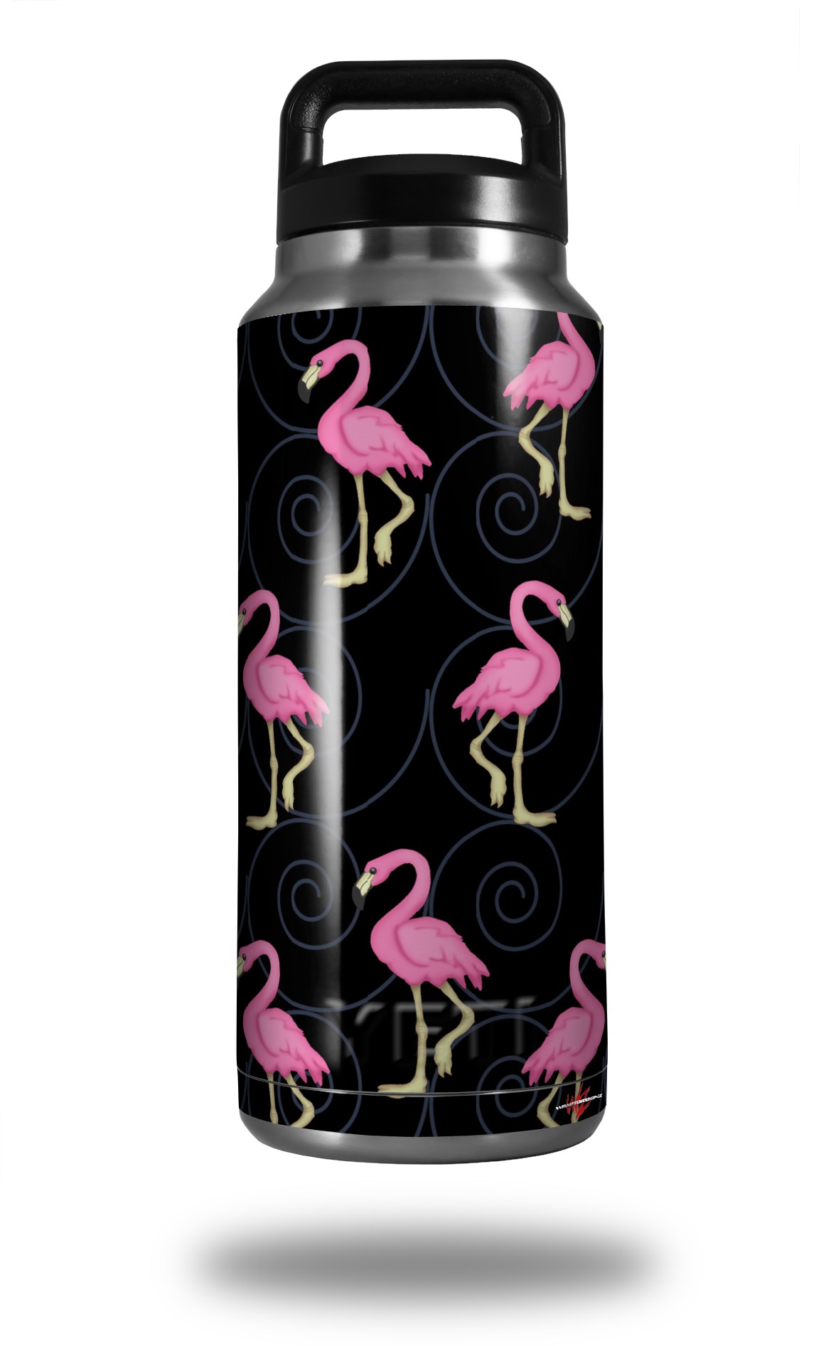 Skin Decal Wrap for Yeti Rambler Bottle 36oz Flamingos on Black (YETI NOT INCLUDED)