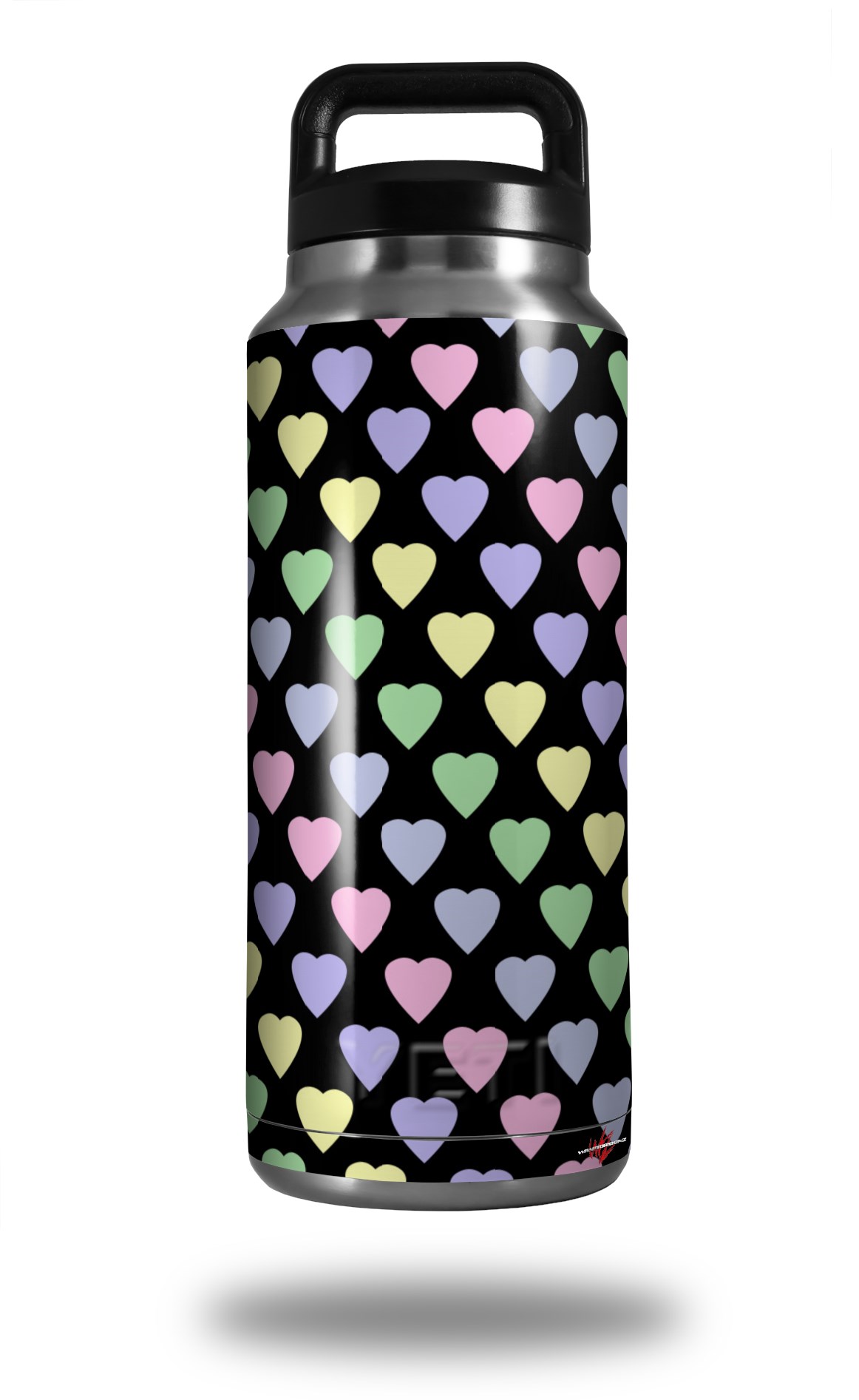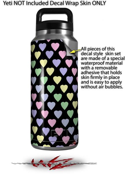 Skin Decal Wrap for Yeti Rambler Bottle 36oz Pastel Hearts on Black (YETI NOT INCLUDED)