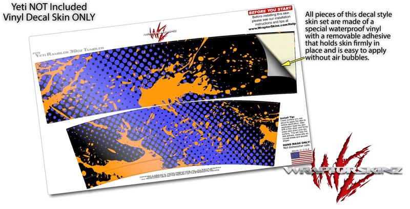 Skin Decal Wrap for Yeti Tumbler Rambler 30 oz Halftone Splatter Orange Blue (TUMBLER NOT INCLUDED)