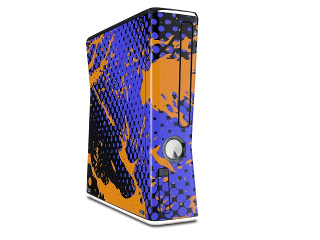 Halftone Splatter Orange Blue Decal Style Skin for XBOX 360 Slim Vertical
