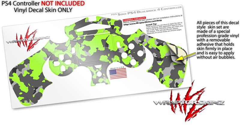 WraptorSkinz Skin compatible with Sony PS4 Dualshock Controller PlayStation 4 Original Slim and Pro WraptorCamo Old School Camouflage Camo Lime Green (CONTROLLER NOT INCLUDED)
