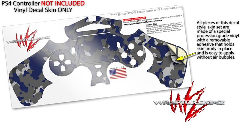 WraptorSkinz Skin compatible with Sony PS4 Dualshock Controller PlayStation 4 Original Slim and Pro WraptorCamo Old School Camouflage Camo Blue Navy (CONTROLLER NOT INCLUDED)